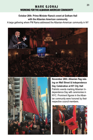 Patriotic events marking Albanian In- dependence Day with ceremonies in NYC. Prominent figures in the Alban- ian community were honored by their respective council members.