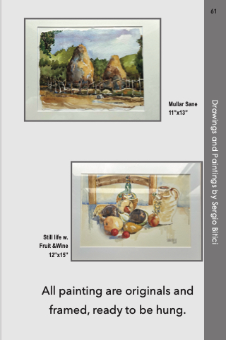 Mullar Sane 11”x13” 61 Still life w. Fruit &Wine 12”x15” All painting are originals and framed, ready to be hung. Drawings and Paintings by Sergio Bitici
