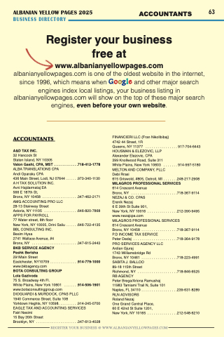 ALBANIAN YELLOW PAGES 2025 ACCOUNTANTS 63 BUSINESS DIRECTORY