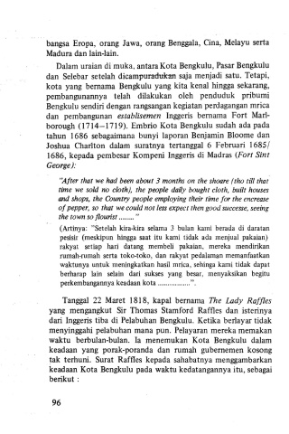 dari lnggeris tiba di Pelabuhan Bengkulu. Ketika berlayar tidak