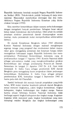 Di daerah Kresidenan Bengkulu tahun 1945 dibentuk