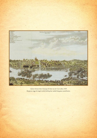 Lukisan Keraton Kuto Gawang oleh Joan van der Laen tahun 1659. Bangunan tinggi di tengah tembok keliling kuto adalah bangunan isana/keraton. 138