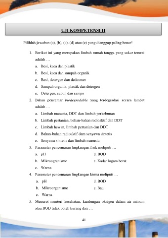 1. Berikut ini yang merupakan limbah rumah tangga yang sukar terurai