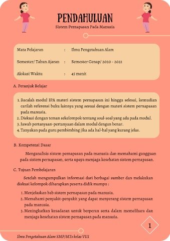 1. Bacalah modul IPA materi sistem pernapasan ini hingga selesai, kemudian