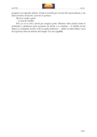 llantas se asemejaba mucho al de los gritos humanos—, atisbé un jirón blanco cerca
