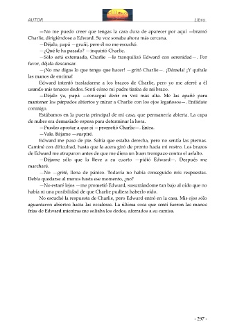 Charlie, dirigiéndose a Edward. Su voz sonaba ahora más cercana.