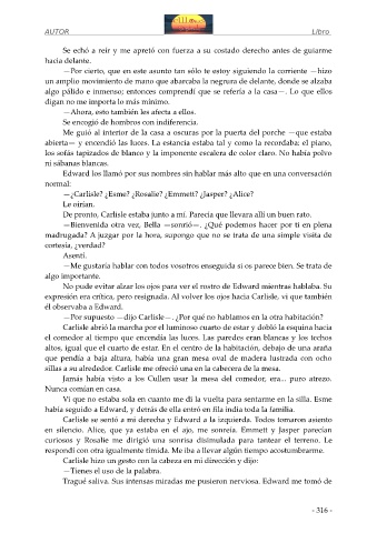 sillas a su alrededor. Carlisle me ofreció una en la cabecera de la mesa.