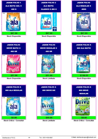 Distribuidora P.R.O. 44 Tel.: 0351-458-8927 E-Mail: distribuidorapro@hotmail.com