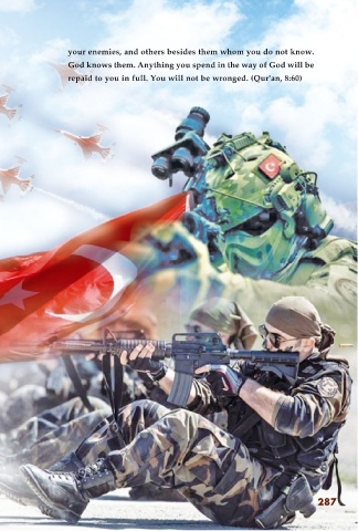 your enemies, and others besides them whom you do not know. God knows them. Anything you spend in the way of God will be repaid to you in full. You will not be wronged. (Qur'an, 8:60) 287