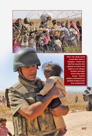 When the whole world turned their back to refugees, Turkey was the first country that opened its hearts and gates to our refugee brothers amongst whom there were Kurds. Turkish soldiers welcomed our Kurdish brothers with true compassion. 357