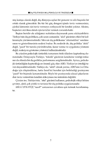 Çözüm ise, Türkiye'nin, "ak›l" gücünü kullanan, psikolojik etkiyi lehine