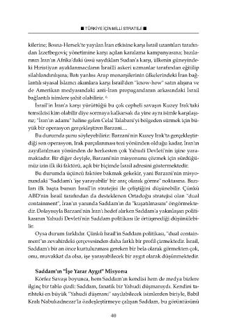 Oysa durum farkl›d›r. Çünkü ‹srail'in Saddam politikas›, "dual contain-