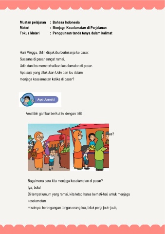 Udin dan ibu memperhatikan keselamatan di pasar.