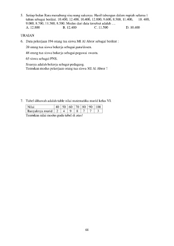 7. Tabel dibawah adalah table nilai matematika murid kelas VI.