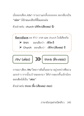 ตัวอย่างเช่น church (เชิร์ช-(เสียงลม) ฉึ)