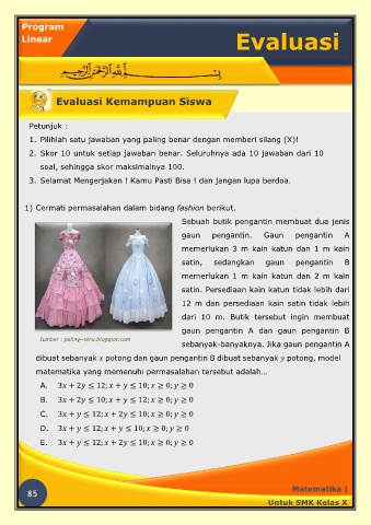 1) Cermati permasalahan dalam bidang fashion berikut.