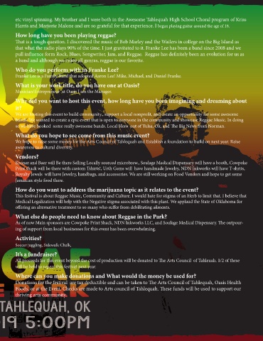 bands. We wanted to create a epic event that is open to everyone in the community and showcase Reggae Music. In doing
