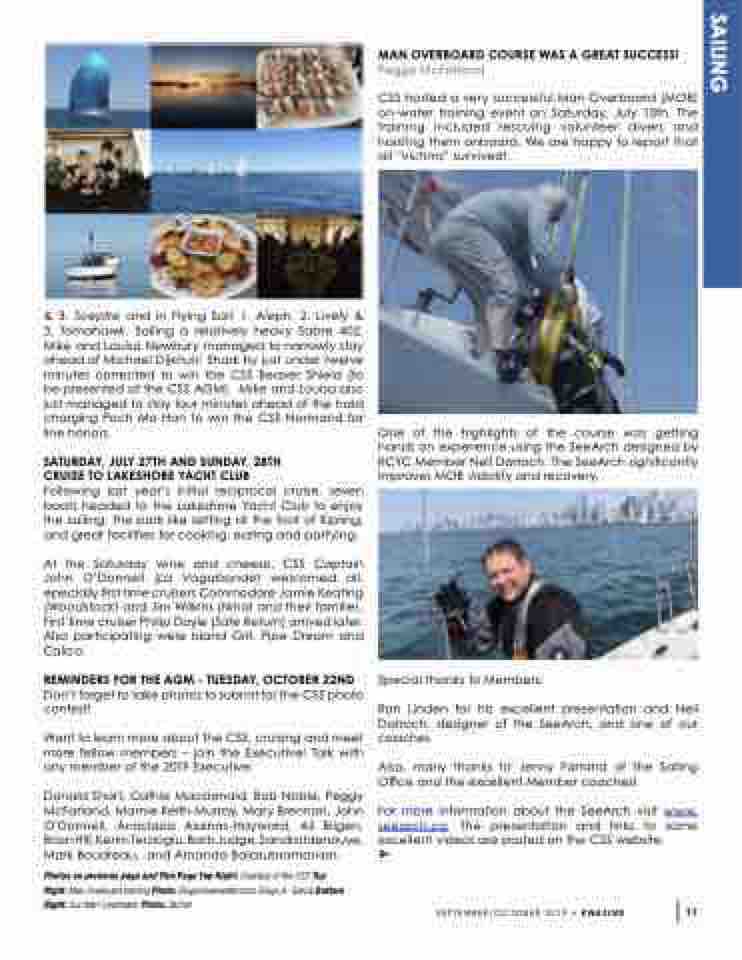Photos on previous page and This Page Top Right: Courtesy of the CSS Top Right: Man Overboard training Photo: DiegoUnderwater.com; Diego A. Garcia Bottom Right: Our Man Overboard. Photo: Zacher