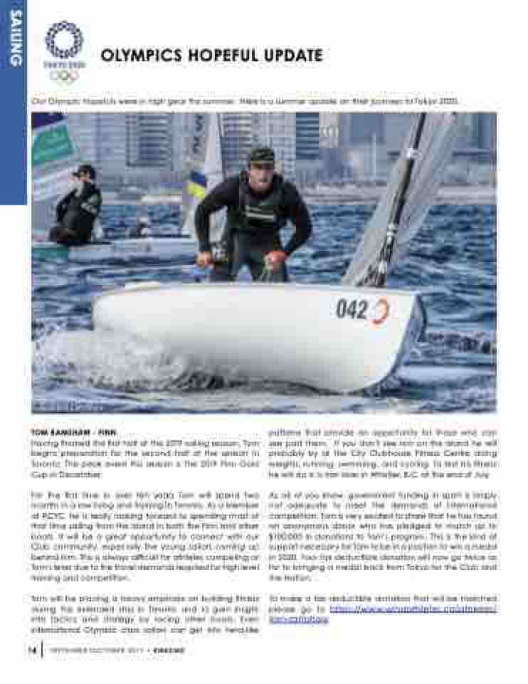 Having finished the first half of the 2019 sailing season, Tom begins preparation for the second half of the season in Toronto. The peak event this season is the 2019 Finn Gold Cup in December.