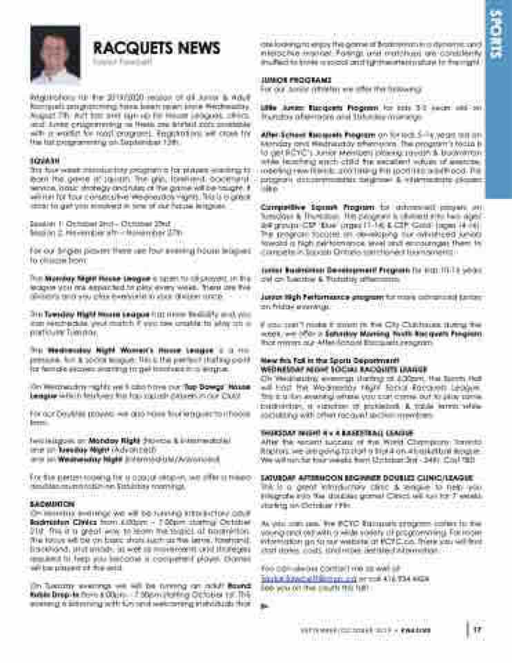 As you can see, the RCYC Racquets program caters to the young and old with a wide variety of programming. For more information go to our website at RCYC.ca. There you will find start dates, costs, and more detailed information.