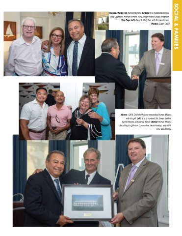 Above: GM & COO Neil Rooney presenting Roman Moreno with his gift. Left: (l to r) Humbert Sin, Erwyn Naidoo, Sylvia Parsons and Shirley Walker. Below: Roman Moreno Receiving his gift from Commodore Jamie Keating and GM & COO Neil Rooney.