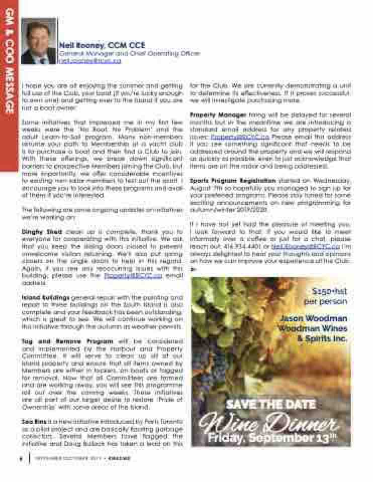 If I have not yet had the pleasure of meeting you, I look forward to that. If you would like to meet informally over a coffee or just for a chat, please reach out; 416.934.4401 or Neil.Rooney@RCYC.ca I’m always delighted to hear your thoughts and opinions on how we can improve your experience at the Club.