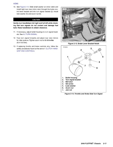 Figure 2-13. Brake Lever Bracket Notch 3 2 7 Figure 2-14. Throttle and Brake Side Turn Signal 2006 FLSTFSE 2 : Chassis