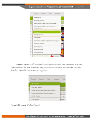 กำรบันทึกนั้น ชิ้นงำนของเรำนั้นจะถูกเก็บบนใน Server ของ App inventor ดังนั้นเรำสำมำรถไปเปิดจำกเครื่อง