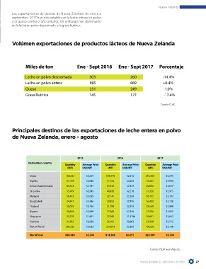 Produccción de leche en Nueva Zelanda Principales destinos de las exportaciones de leche entera en polvo