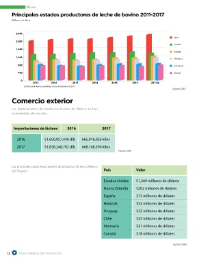 Principales estados productores de leche de bovino 2011-2017 Los principales productos importados por México fueron: