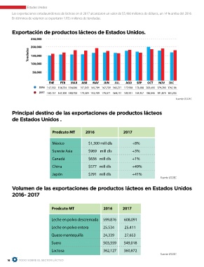 Volumen de las exportaciones de productos lácteos en Estados Unidos