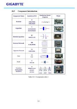 10.5 Component Introduction Table 10-1: Components table-1 121