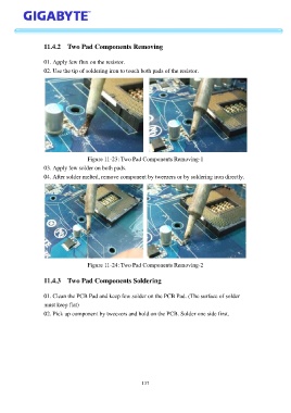 04. After solder melted, remove component by tweezers or by soldering iron directly.