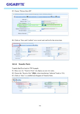 03. Click on “Save” to establish new Request of Transfer Parts.
