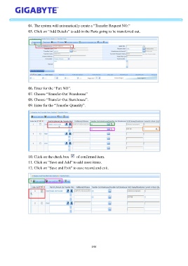05. Click on “Add Details” to add-in the Parts going to be transferred out.