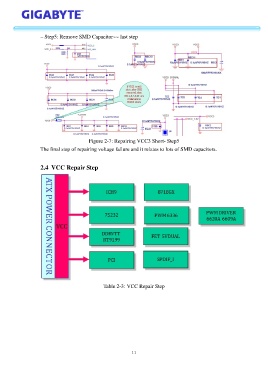 – Step5: Remove SMD Capacitor~~ last step Figure 2-7: Repairing VCC3 Short- Step5 The final step of repairing voltage failure and it relates to lots of SMD capacitors. 2.4 VCC Repair Step Table 2-3: VCC Repair Step 11