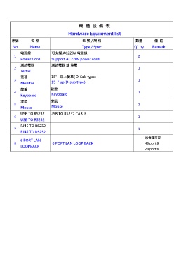 序號           名  稱                            型 號 / 規 格                         數量          備  註