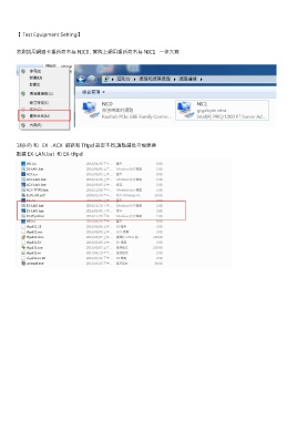 【 Test Equipment Setting】 將測試用網路卡重新命名為 NIC0 , 實際上網用重新命名為 NIC1 一律大寫 18(HP) 和 EX . ACX 網路和 Tftpd 設定不同,請點選批次檔更換 點選 EX-LAN.bat 和 EX-tftpd