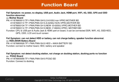 Fail Symptom: no power, no display, USB port, Audio Jack, HDMI port, WiFi, 4G, SSD, GPS and ODD