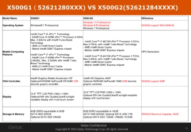 Model Name X500G1 X500-G2 Difference