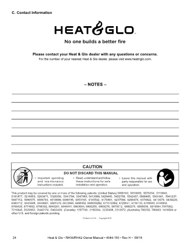 Heat & Glo • RH36/RH42 Owner Manual • 4044-193 • Rev H • 09/18