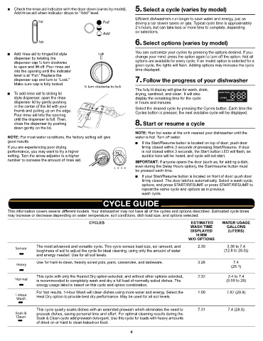 This information covers several different models. Your dishwasher may not have all of the cycles and options described. Estimated cycle times