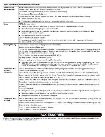 Whirlpool Corporation also offers a variety of accessories for your dishwasher. In the U.S.A., visit www.whirlpool.com/accessories to order.