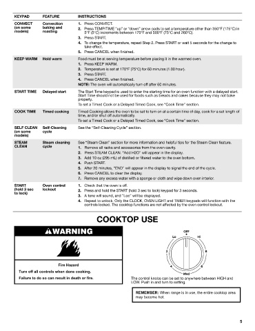 Fire Hazard Turn off all controls when done cooking. Failure to do so can result in death or fire. REMEMBER: When range is in use, the entire cooktop area may become hot. 5