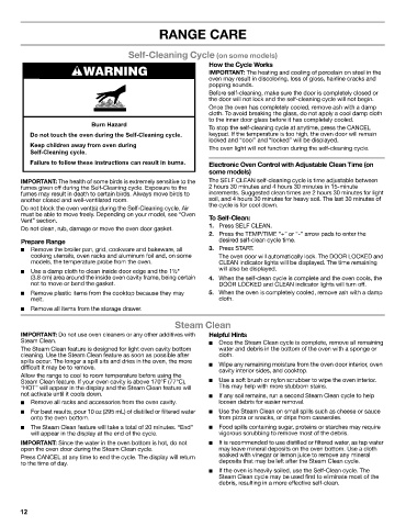 Burn Hazard Do not touch the oven during the Self-Cleaning cycle. Keep children away from oven during Self-Cleaning cycle. Failure to follow these instructions can result in burns. 12