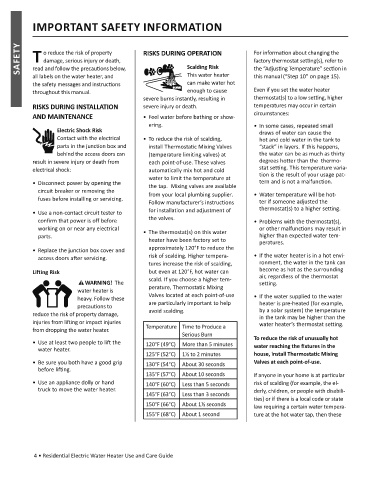 120°F (49°C) More than 5 minutes water reaching the xtures in the