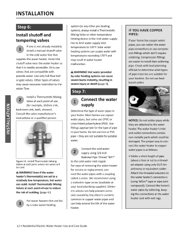 INSTALLATION instruc ons or a qualied person. Determine the type of water pipes in NOTICE: Do not solder pipes while