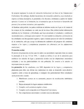establecer los criterios de logro y promoción acordes con las adaptaciones curriculares