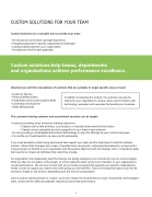 • A targeted approach to specific organizational challenges • Lasting change tailored to your organization