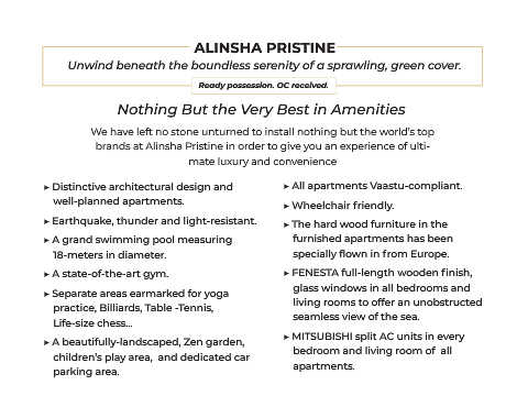 Distinctive architectural design and All apartments Vaastu-compliant.